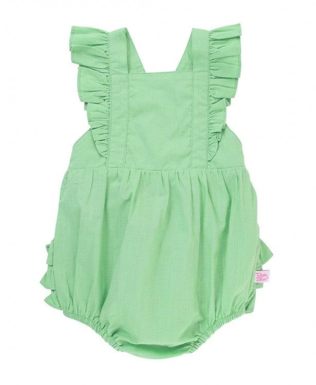 Dusty Jade Slub Cross-Back Ruffle Romper